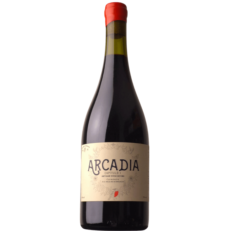 Arcadia es un vino versátil, fresco y frutal, elaborado 100% con Carménère proveniente del Valle de Aconcagua, comuna de Llay Llay. Sus viñedos se ubican al pie de la cuesta La Chicas, lugar privilegiado por sus días cálidos y noches frescas, lo que permite obtener un vino equilibrado, de estructura sedosa y acidez vibrante.