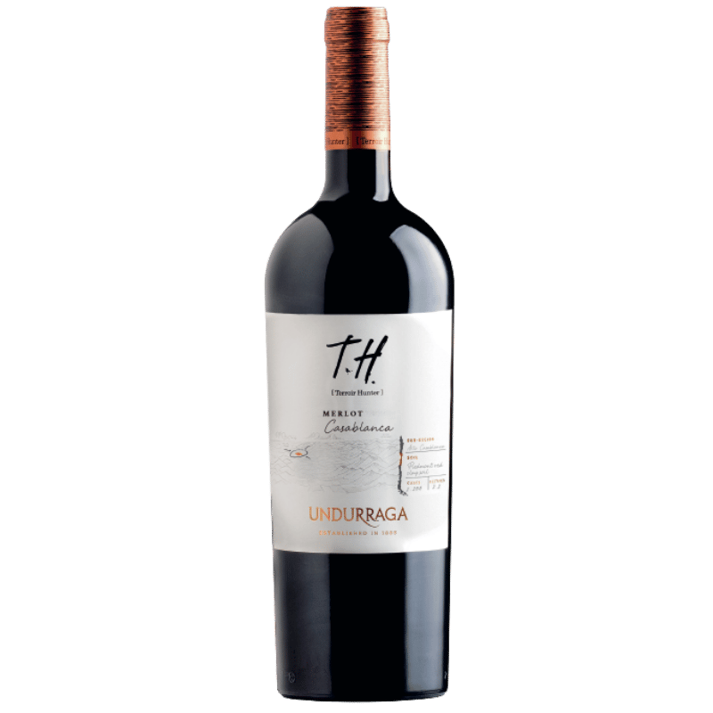 TH Merlot Casablanca forma parte de la prestigiosa línea Terroir Hunter (TH) de Viña Undurraga, un proyecto enológico de alta precisión que nace con un objetivo claro: identificar la mejor cepa en cada valle de Chile, a través de un trabajo profundamente minucioso, parcelario y enfocado en el terroir, liderado por Rafael Urrejola.